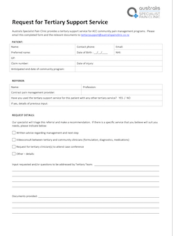 Please feel free to contact us if you have any queries about referring.  We recommend beginning with an assessment by a Specialist Pain Medicine Physician, who will provide a recommendation for management.  This may include a pain management program at Australis Specialist Pain Clinic, or with other rehabilitation providers depending on what is most suitable.